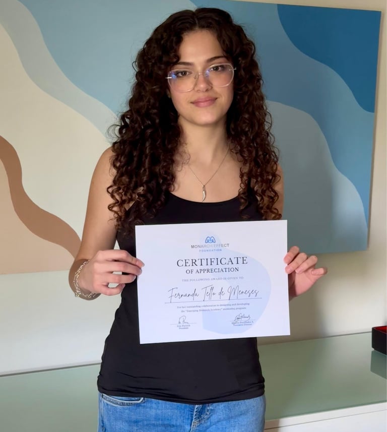 Como Embajadora de la Monarch Effect Foundation, Vicepresidenta, Gerente de Comunicaciones del Monarch Circle of Impact y estudiante de psicología en la University of New York in Prague, ahora puedo reconocer algo que antes solo esperaba: ya no estoy únicamente deseando contribuir, ya lo estoy haciendo. Mis metas, mi crecimiento y mi sentido de propósito se han vuelto posibles gracias a las oportunidades, la guía y los valores que la fundación me ha brindado.