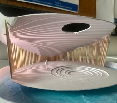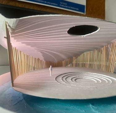 Esta maqueta representa un espacio de contemplación, un lugar donde alguien puede meditar y sentirse en paz. Me inspiré en una mantarraya, ya que para mí representa familia, unión, naturaleza y magnitud.