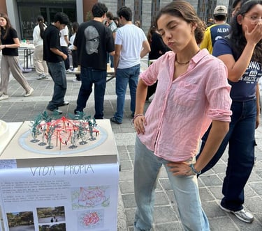 Al inicio fue un poco complicado ponernos de acuerdo sobre qué hacer, porque a veces tienes una idea muy clara en la cabeza pero no sabes cómo transmitirla a los demás, y eso me causó bastante frustración. Sin embargo, al empezar a hablar y trabajar juntas, logramos unir nuestras ideas para llegar a un objetivo común. Mientras una trabajaba en la lámina, otra en la maqueta y otra salía a comprar materiales, el tiempo se nos pasó volando.