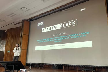 2. Pitch en el Bootcamp: Me he estado preparando para esto todo el semestre. En mi campus, todos los estudiantes de primero y segundo semestre podemos trabajar en cualquier proyecto que queramos crear, siempre y cuando sea innovador, ¡y podemos presentarlo frente a básicamente todos en el campus! Puede presentar “Crystal Black: La IA Explicada”, que es una web app impulsada por un chatbot de IA destinada a explicar cómo funciona la IA a usuarios no especializados. Fue una gran experiencia, ya que me sentí muy cómodo presentando frente a tanta gente.