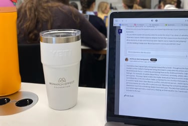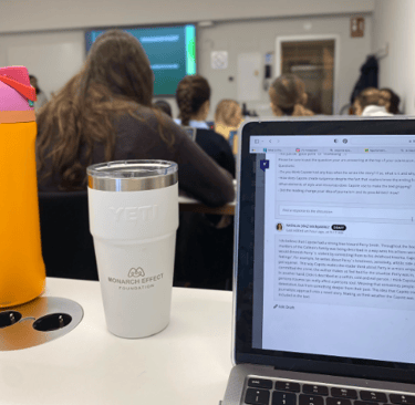 Durante el verano también trabajé en mis proyectos, donde Fridha y yo usamos toda nuestra creatividad para tomar fotos divertidas con la Monarch’s Mug. Fue muy divertido hacerlo, especialmente porque mi carrera es Comunicación y Medios Digitales y uno de los cursos que voy a tomar es fotografía. Esto me dio la oportunidad de practicar y fortalecer mis habilidades durante el verano.