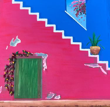 For this project, I was inspired by two desert plants: the bougainvillea and the biznaga, both native to Baja California Sur. I chose the theme of Contemporary Mexico, but I wanted to give it a more artistic focus and balance it with architecture, based on the idea that painting works as the “facade” of a staircase.